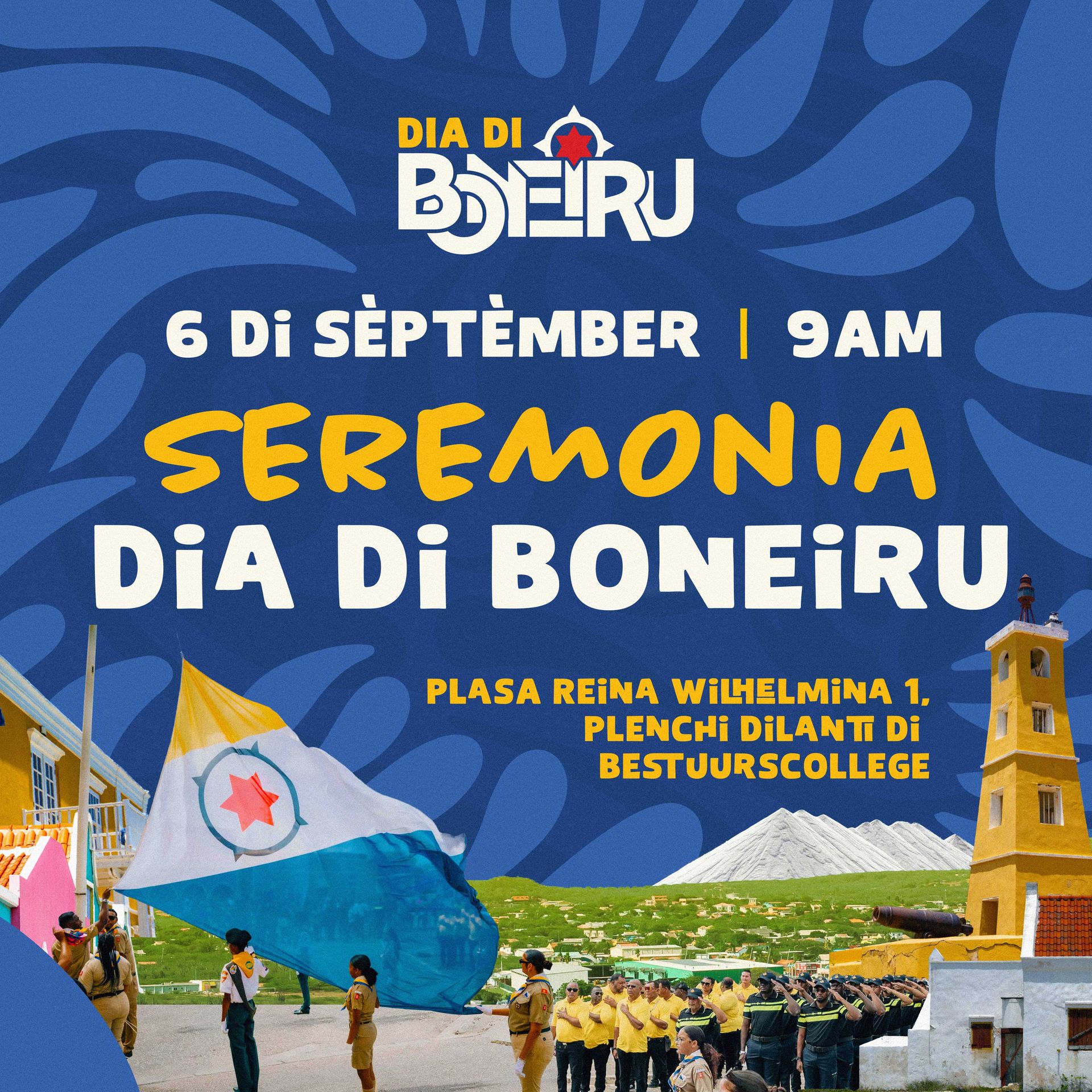 Na nòmber di Kolegio Ehekutivo di Entidat Públiko Boneiru kordialmente nos ta invitá bo pa presensia e Seremonia di Dia di Boneiru huntu ku nos. Nos ta spera ku huntu nos por krea un selebrashon spesial dia 6 di sèptèmber 2025.